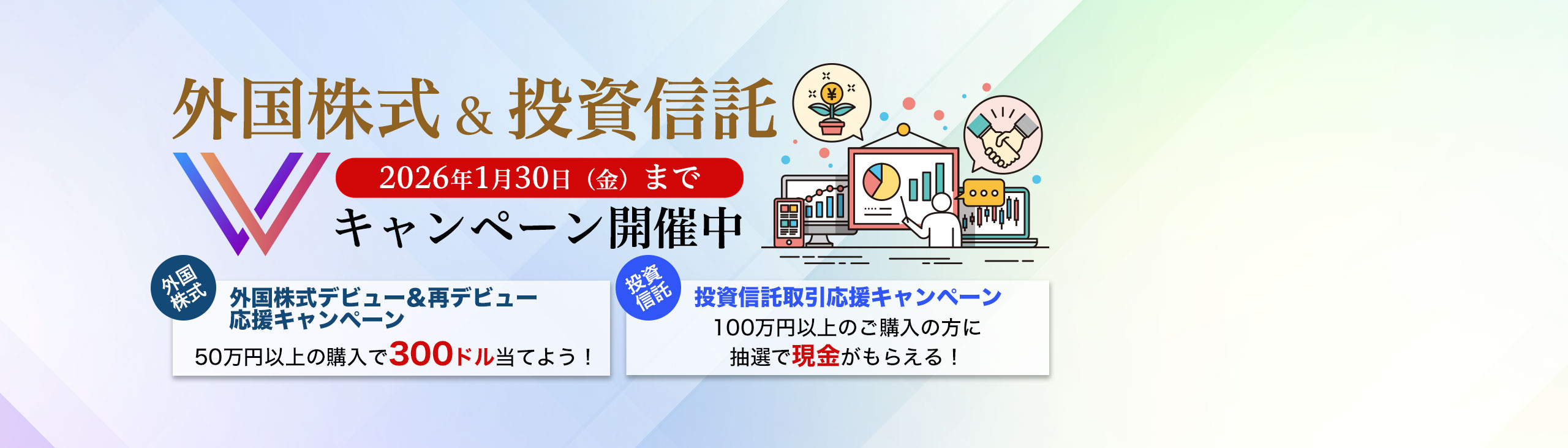 50万円以上の購入で300ドル当てよう!外国株式デビュー&再デビュー応援キャンペーンお知らせキャンペーン